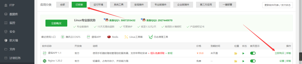 由于宝塔验证的原因这里显示的是立即购买,这不用慌,直接F12打开控制台点击控制台(Console)粘贴以下代码即可。