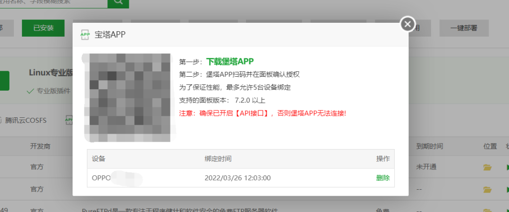 之前的宝塔APP在7.8及以上面板无法绑定,会提示404,原因是宝塔将插件的验证升级了,更为严格导致的。