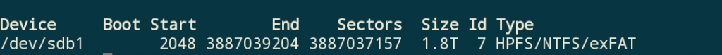 安装完成后插入硬盘并用命令查看盘符:sudo /sbin/fdisk -l
